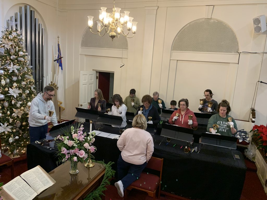 Our Handbell Choir meets on Mondays at 6 pm for rehearsal several times prior to Christmas and Easter where they join with the Choir to perform several arrangements for the Services.